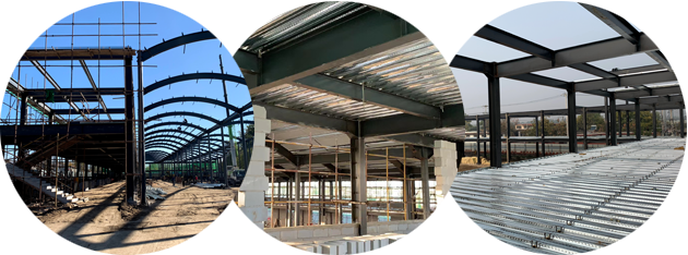 主要生产彩钢夹芯复合板、彩钢压型板、镀锌 压型板、镀锌组合楼板、C、Z型钢檀条、轻 钢结构等新型建材产品